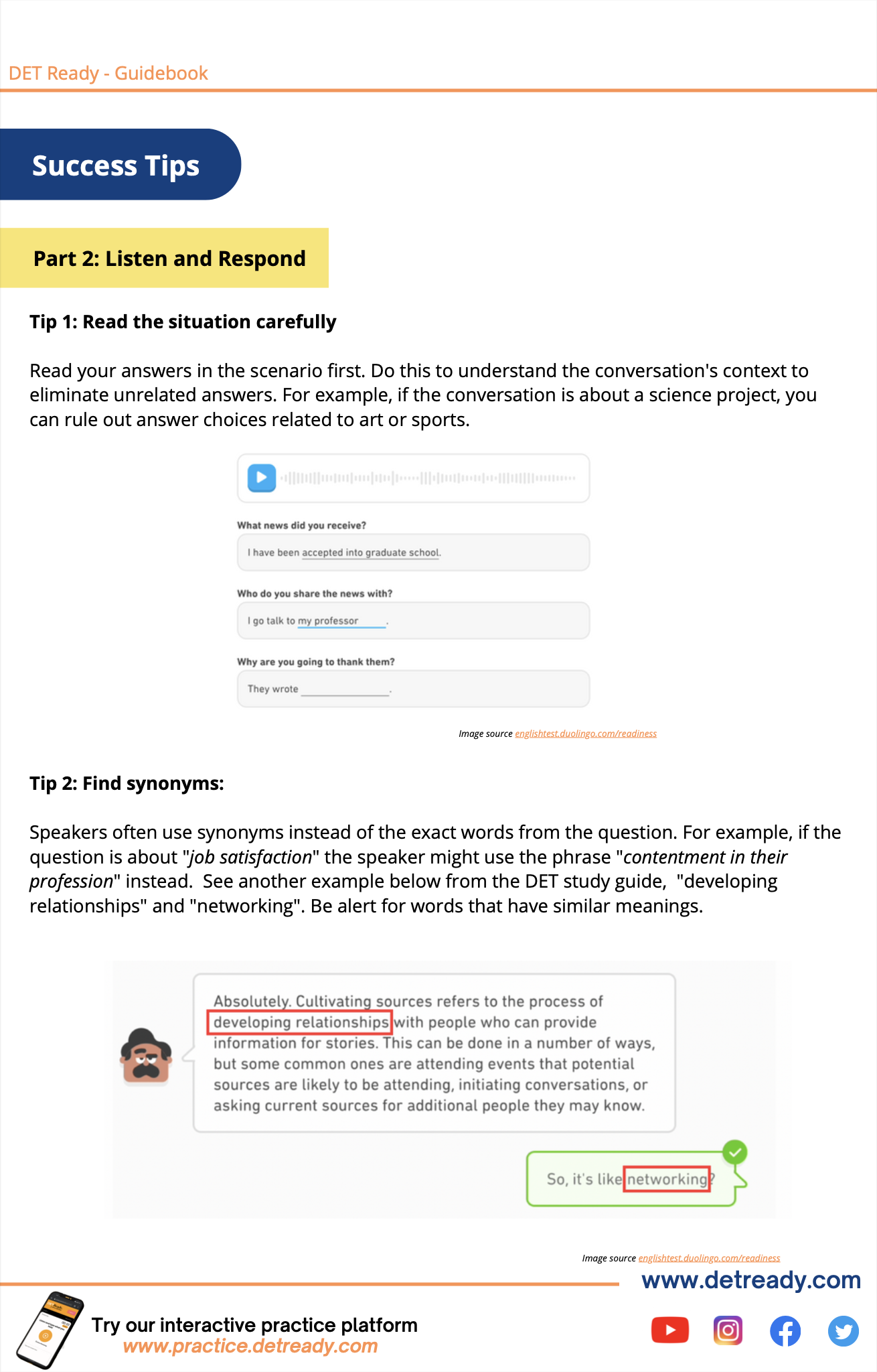 Feeling lost about the Duolingo English Test? I've got you covered. This Complete Guide E-book is here to make the test easy to understand. It's packed with effective steps for each question, strategies and tips, plenty of practice questions. Don't just take the test – MASTER it!